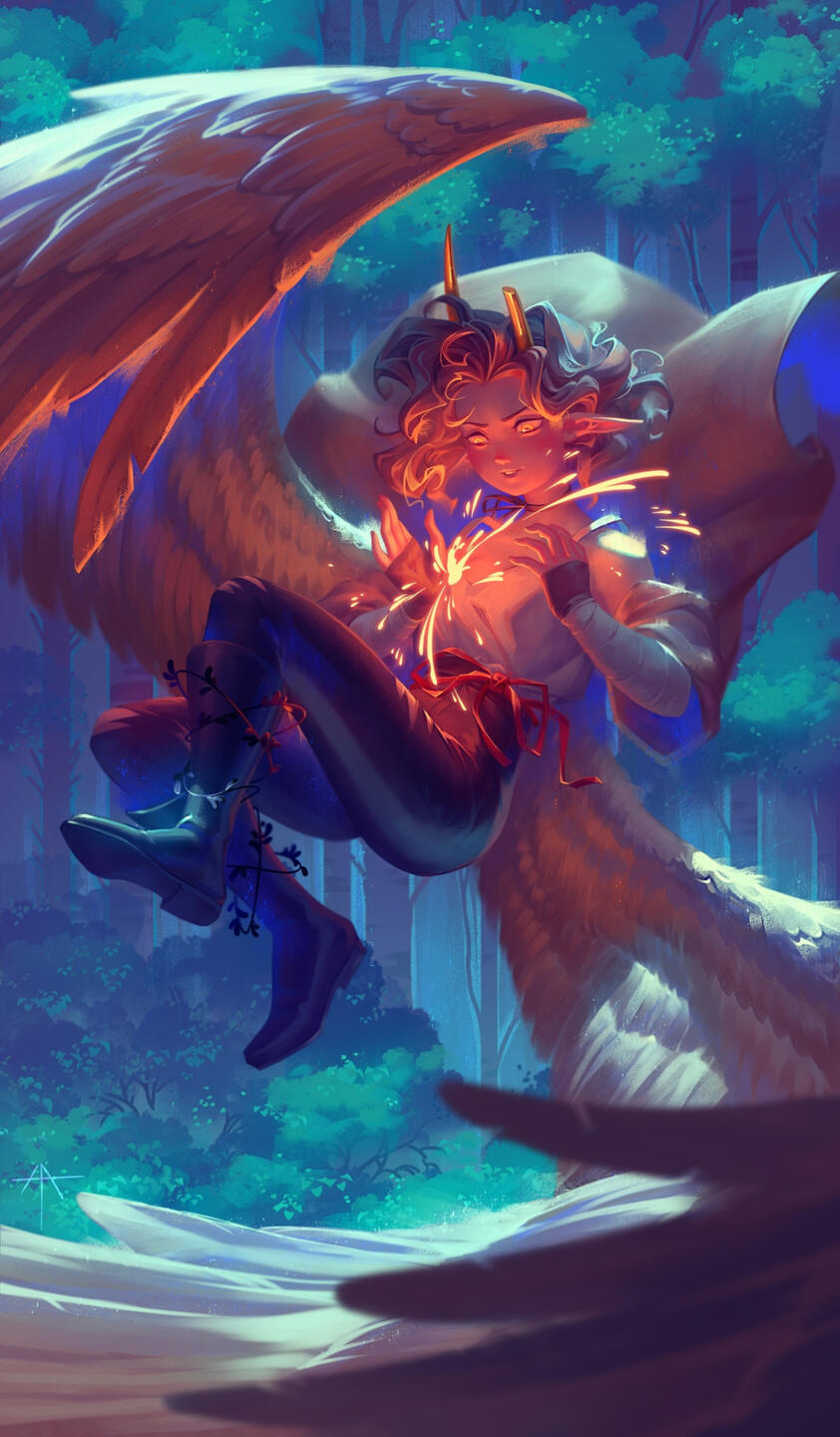 2. I really like to draw portraits, but they take a lot of time and effort. I don't want to burn out drawing them like a conveyor belt, so they are less accessible than other items in my commissions. And that’s why I take them in the Auction YCH format, where their starting bid is half as low. You can order a portrait at the price here with any of your ideas, or try your luck at the auction by buying a YCH with a ready-made idea from me! (Auctions are held in two social networks - DeviantArt and Twitter)ALWAYS a simple background (color, gradient, textures). Characters are often detailed so a complex background doesn't make sense here. But you can add decorative elements - magic, sparks, flowers, etc.You don't have to describe your idea in detail, I can come up with the plot and background myself!Yes, a lot of hair that takes up all the space can be replaced with something else - fabric, magic, elements, etc.Additional OC +100% of the price